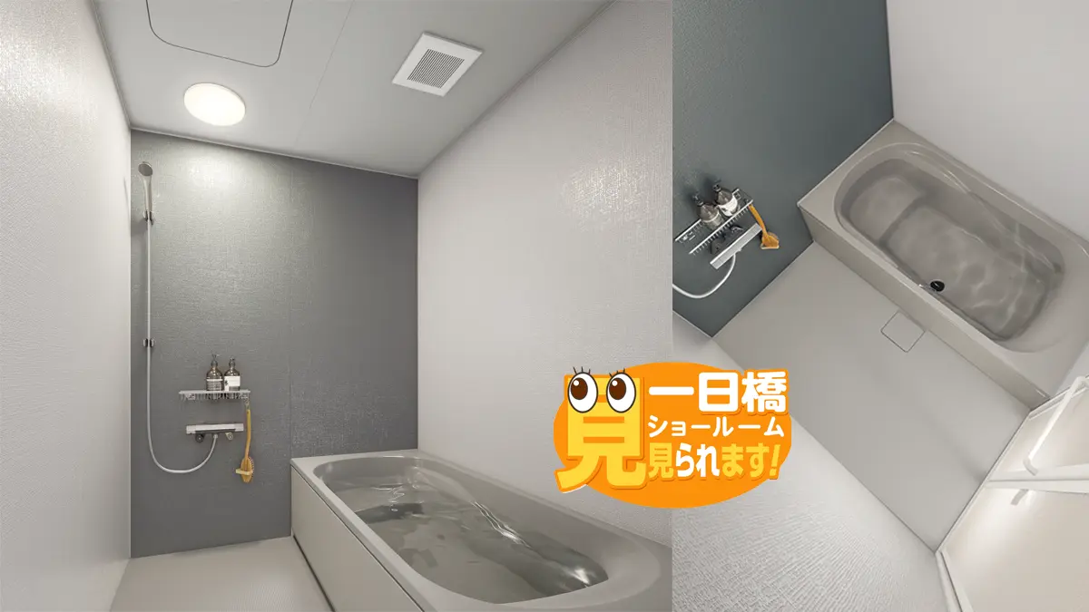 ゆったりと足を伸ばした姿勢で肩まで浸かれる浴槽長さ、両サイドには肘掛けも設定したワイド仕様。