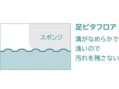 独自の足ピタパターン加工で、濡れても滑りにくい床は、清掃性と乾きやすさを両立しました。